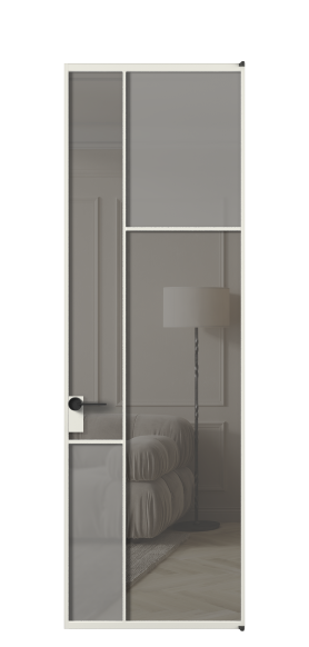 Дверь межкомнатная АЛПЛ041.23 АСБЖ Серый сатин матовое + Серый прозрачное. Цвет Алюминий светло-бежевый. Материал Алюминий в эмали. Коллекция Mosaic. Картинка.